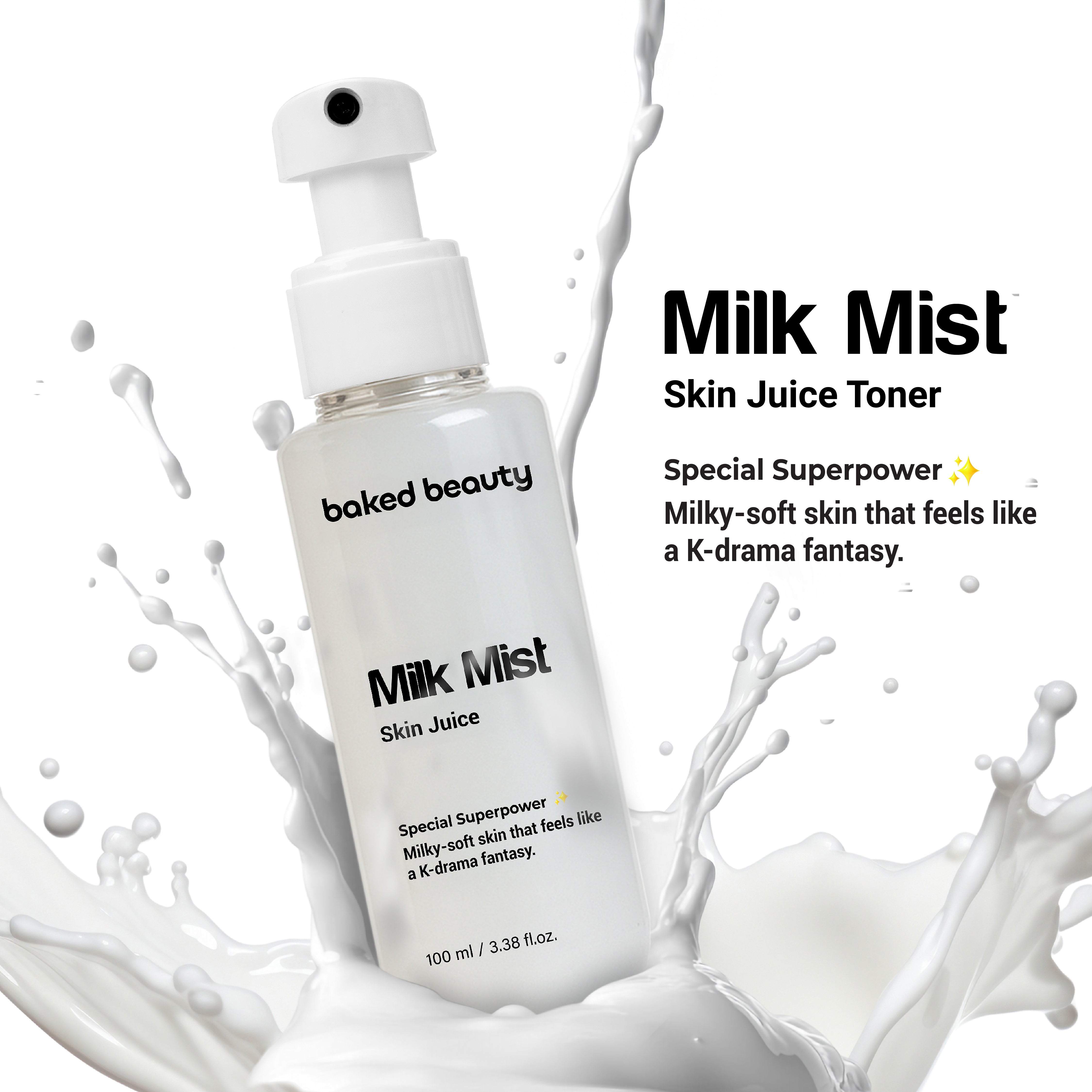 Milk Mist Skin Juice, a next-generation hydrating toner powered by exosome technology and botanical extracts. With its soft, milky texture, this mist delivers a refreshing surge of moisture while soothing and rebalancing your skin after cleansing.